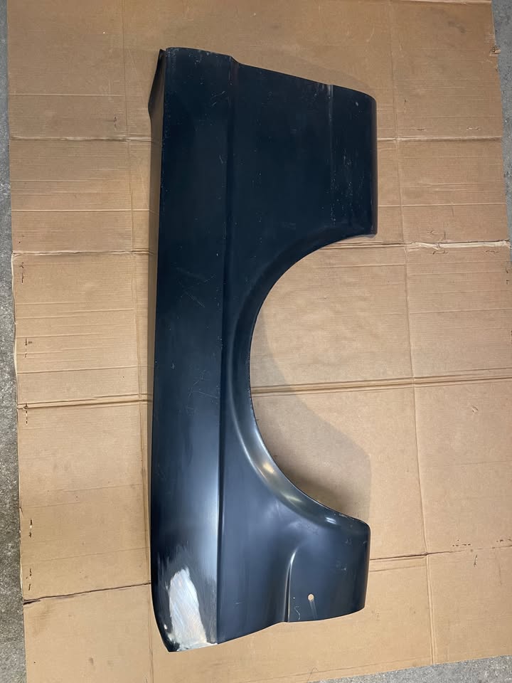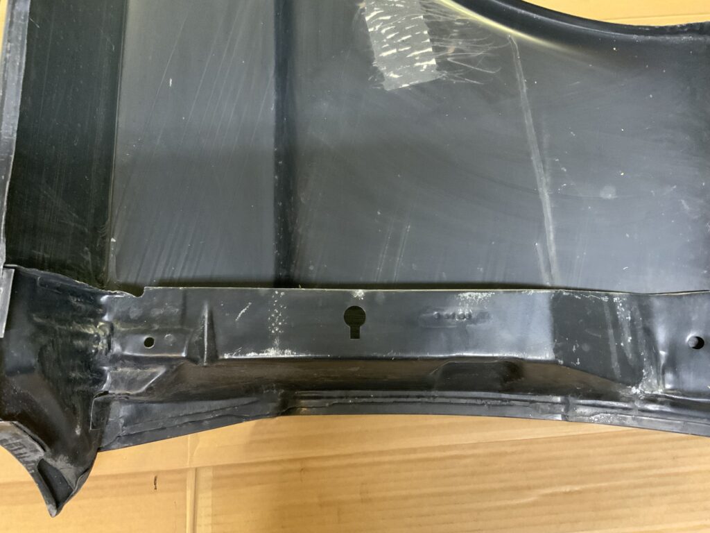 I found a pair of “new”, as in new old stock, fenders for the Mustang listed on Facebook Marketplace. After a little digging, these appear to be manufactured by Ford as service replacement parts. Lord only knows when. They’re not 1960s vintage, as those were primed in red with the part number stenciled on yellow in the inside. These are black primed, and they had parts system stickers on them at some point that were scraped off. So I have no idea when they were produced, but the date stamps indicate they were Ford parts. They seem to be pretty decent quality, a little heavier gauge steel than I have seen on some new parts.